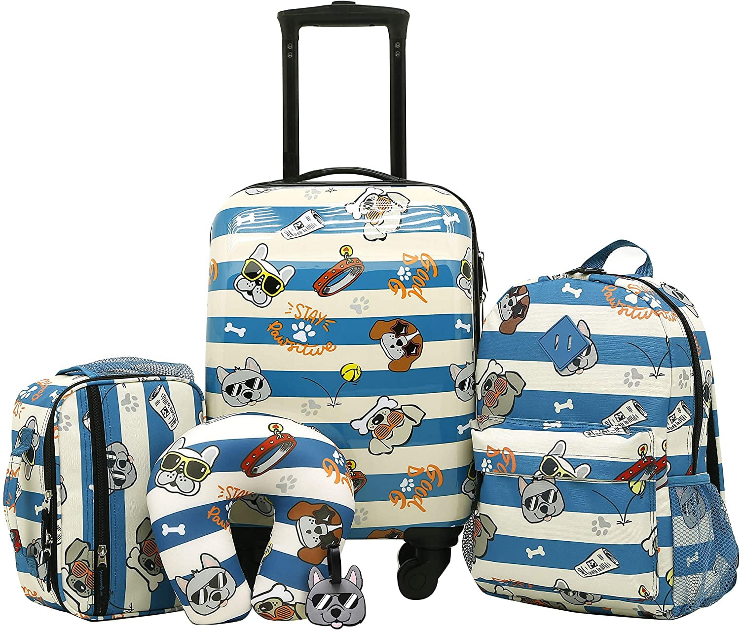 Bctlyinc Kids 5 Piece Luggage Travel Set Cool Dog 5 Piece Children S Travel Set 18 Hard Side Carryon Luggage 15 Backpack 10 Lunch Bag Neck Pillow By Brand Bctlyinc Walmart Com